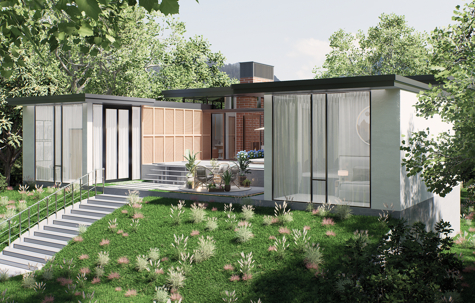 Inspired by the principles of the Glass Link House, the design emphasizes transparency, visual continuity, and spatial flow. Large openings, glazed connections, and open layouts dissolve the boundaries between inside and outside, allowing natural light and greenery to become integral architectural elements.