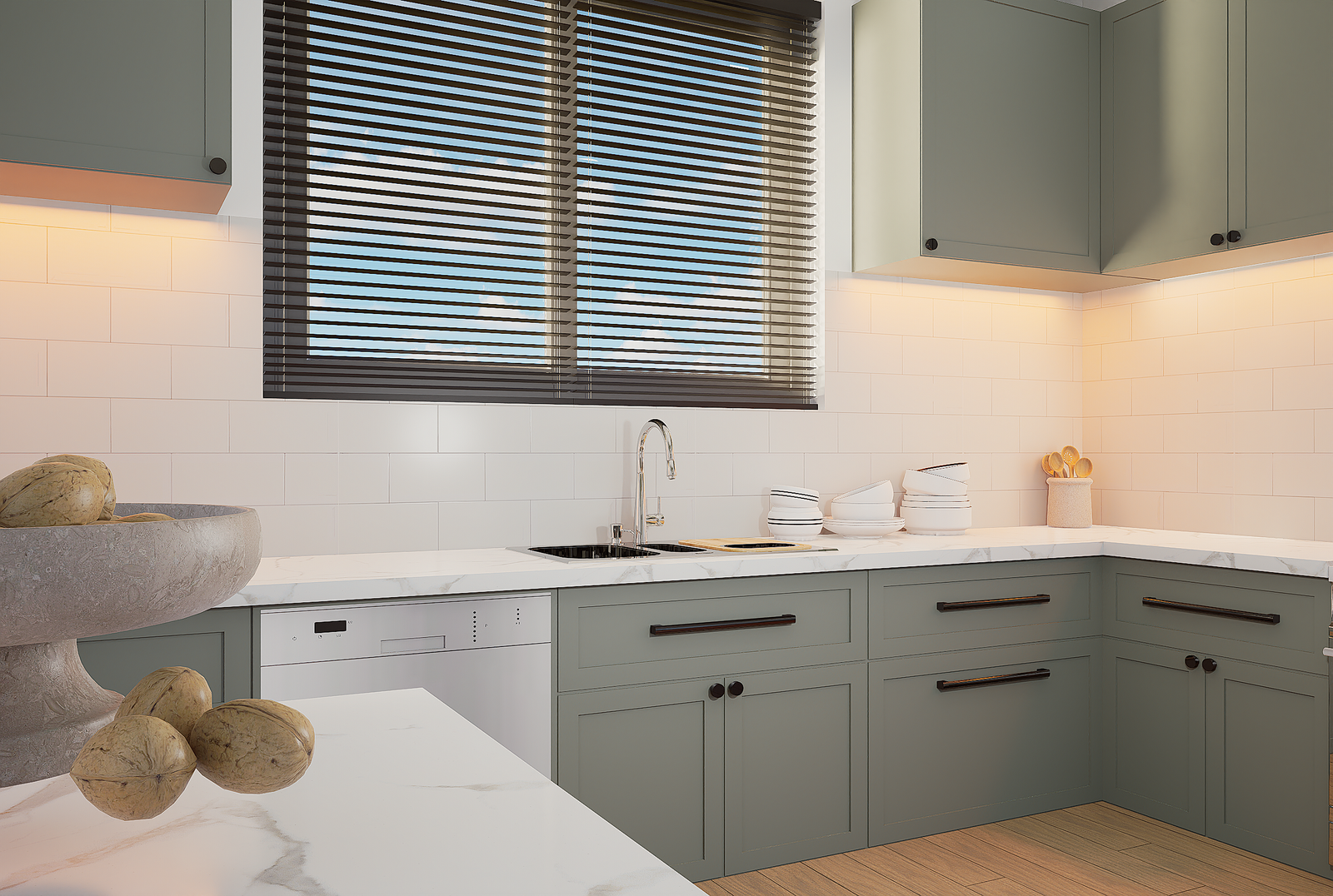 The Culinary Horizon project presents a sophisticated residential kitchen designed for both high-performance cooking and elegant casual dining. The core concept is “Grounded Modernism,” achieved by anchoring a clean, contemporary layout with the soft, earthy tones of sage green and natural wood. Inspiration is drawn from classic Shaker cabinetry and the tranquil color palettes found in nature, filtered through a modern lens. The primary purpose was to create a kitchen that is warm, inviting, and highly efficient, maximizing storage and workspace while providing a comforting aesthetic that moves beyond the starkness of typical minimalist design.