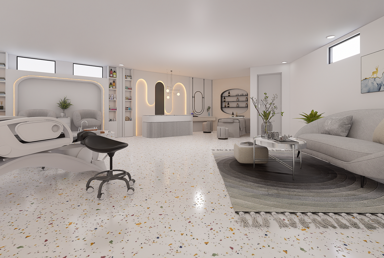 The Wellness Archipelago project is a large-scale commercial interior design for a modern spa or beauty clinic, focusing on creating a luxurious, serene, and highly functional client experience. The core concept is “Organic Minimalism,” using soft, curved forms and a natural color palette to promote a sense of calm and well-being. Inspiration is drawn from mid-century modern aesthetics, blended with contemporary trends in wellness architecture and the playful texture of terrazzo. The purpose was to design a multi-functional space—encompassing reception, treatment areas, and client lounges—that is both visually cohesive and adaptable to various professional services. The entire design is engineered to feel bright, airy, and instinctively restorative.